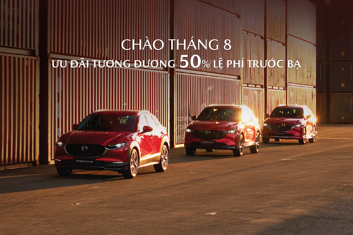 Tháng 8/2025, Mazda áp dụng mức ưu đãi tương đương 50% lệ phí trước bạ, với giá trị cao nhất lên đến 45 triệu đồng, tùy theo từng mẫu xe và phiên bản cụ thể.
